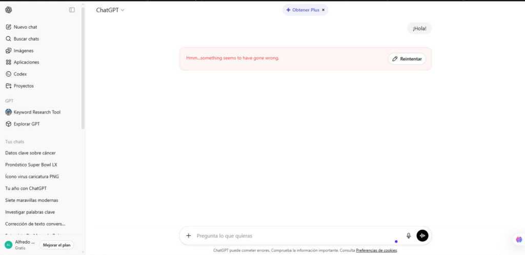 - Hasta el momento, OpenAI no anunció una solución definitiva a los errores que se presentaron en el chatbot. Cabe destacar que no precisó que se tratara de un error exclusivo de la versión gratuita.