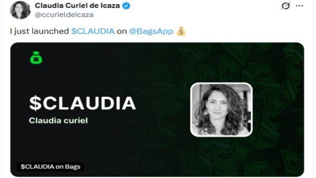 Tan solo 15 minutos después, la cuenta fue utilizada nuevamente con la imagen de perfil de Claudia Curiel, acompañada de un link de procedencia desconocida y el texto “$CLAUDIA $SOL”, mensaje que se repite en la mayoría de las publicaciones posteriores al hackeo.