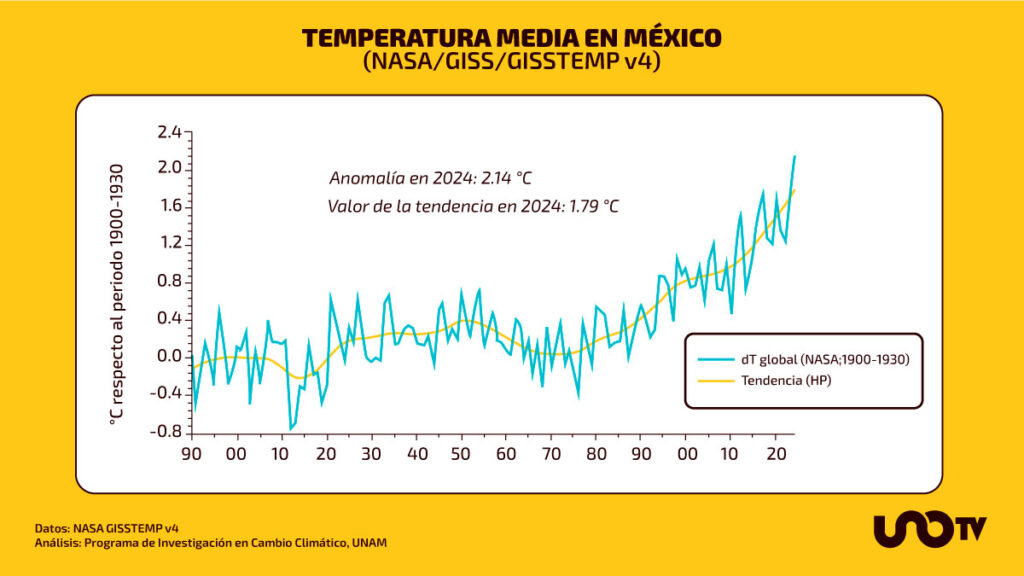 Francisco Estrada Porrúa, coordinador del Programa de Investigación en Cambio Climático de la UNAM, reveló que mientras el planeta se calienta a un ritmo de 2 °C por siglo, México lo hace a 3.2 °C. Algunas regiones del norte ya presentan tendencias de hasta 6 °C por siglo.