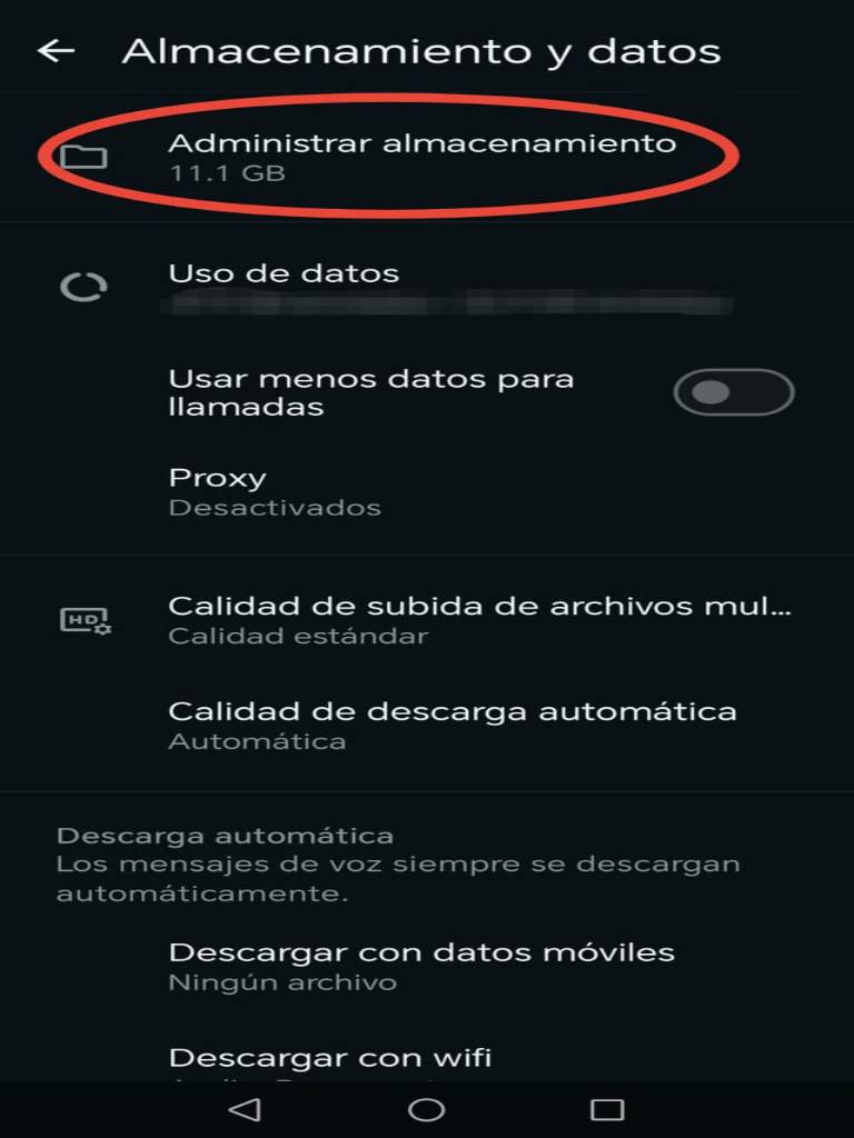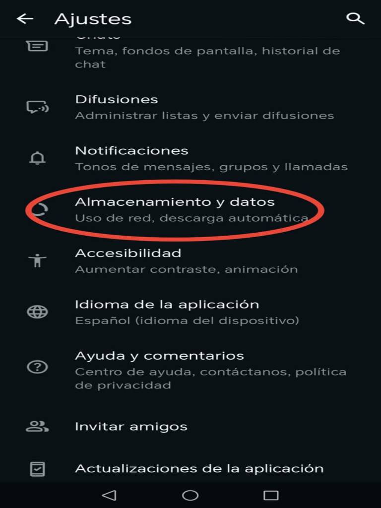 - Localiza y selecciona “Almacenamiento y datos”