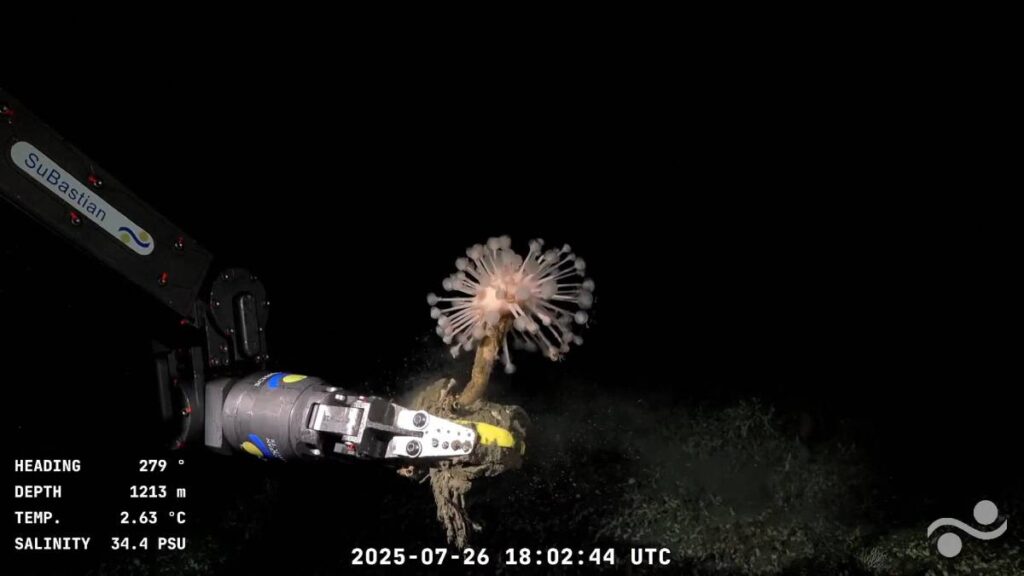 La transmisión ocurre desde el Cañón submarino Mar del Plata, a unos 400 kilómetros al sur de Buenos Aires, donde un equipo de 25 científicos a bordo del buque Falkor (too) opera un robot submarino llamado SuBastian.