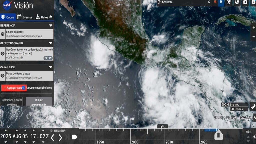 La NASA cuenta con EOSDIS Worldview, su propia herramienta de mapas satelitales que se puede consultar desde el celular para seguir fenómenos meteorológicos como Henriette y otros potenciales ciclones.