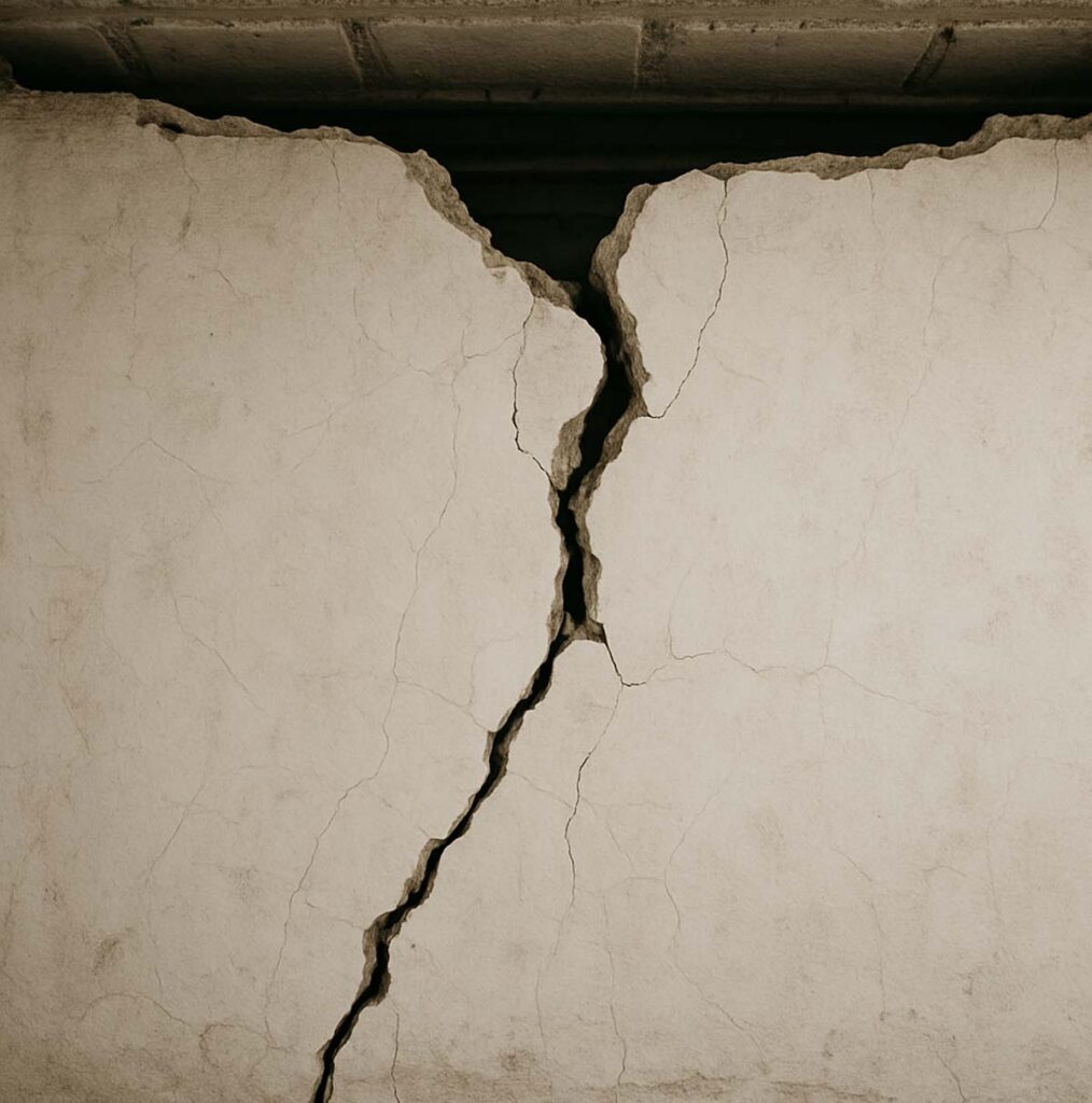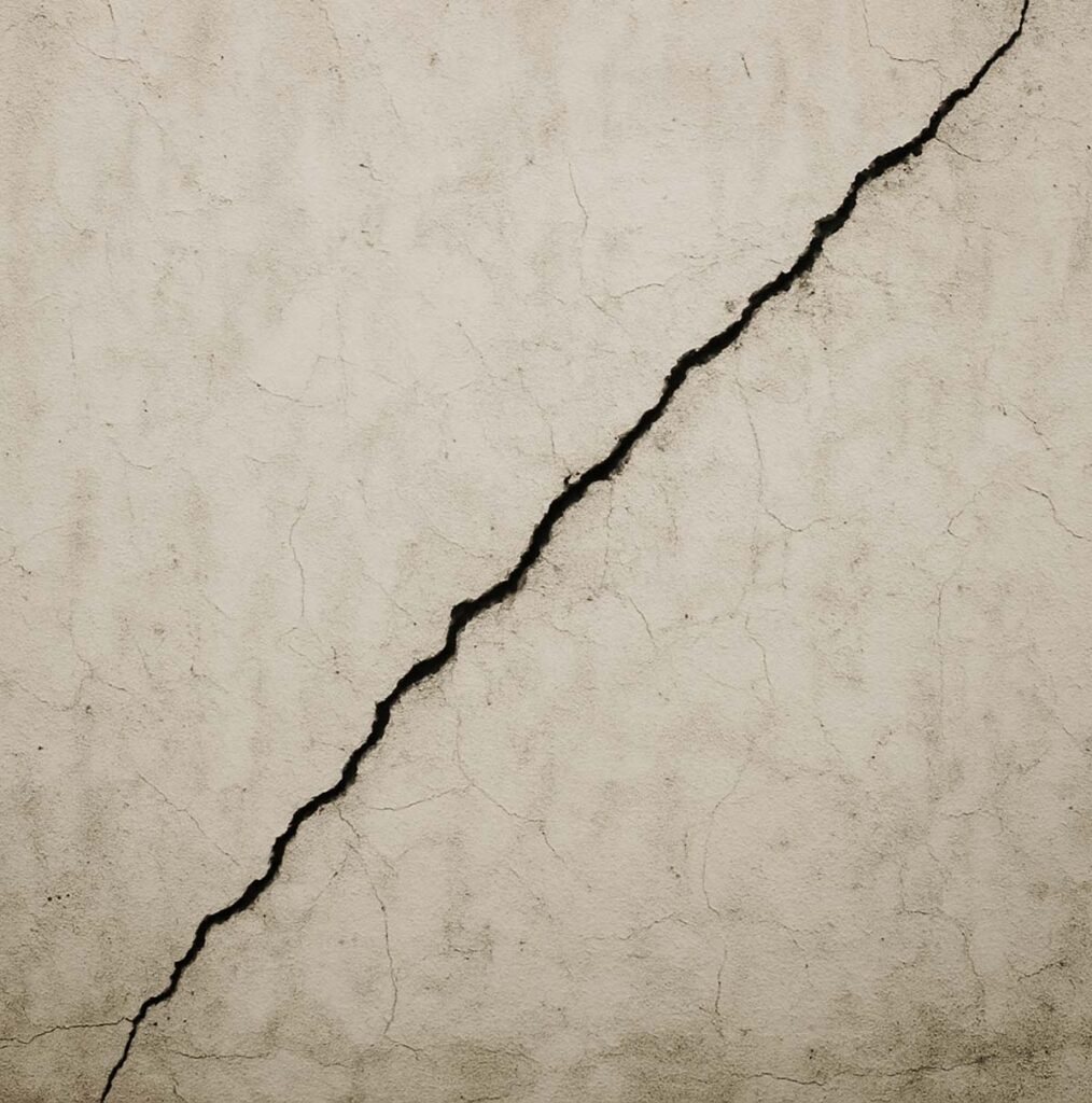 Las grietas más peligrosas son aquellas que atraviesan los muros en diagonal, especialmente si están en muros de carga. Éstas indican que la estructura absorbió movimientos de torsión o fuerza lateral. Si estas grietas llegan a esquinas, bordes de ventanas o puertas, puede ser señal de daño severo.