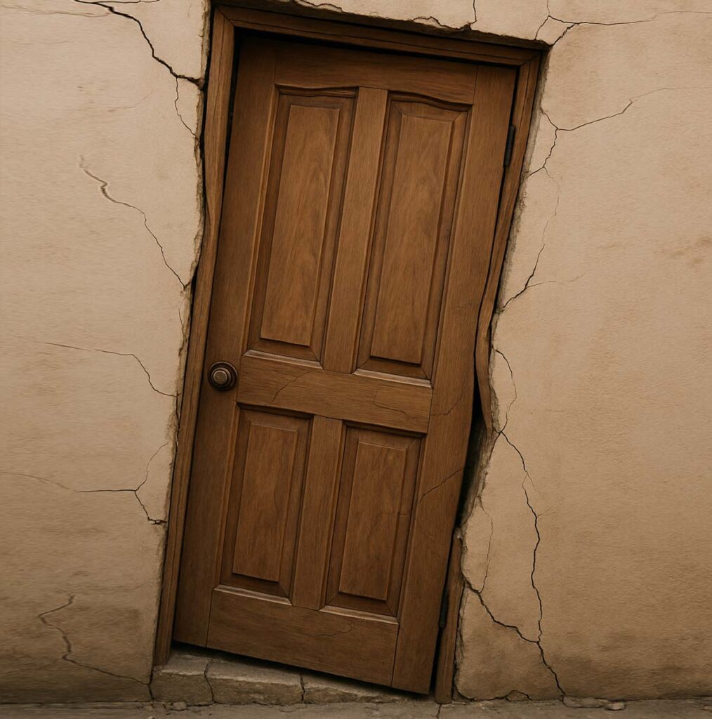 Si una puerta ya no cierra o una ventana está trabada después del sismo, puede ser señal de que el marco se ha deformado. Aunque parezca menor, podría evidenciar movimientos internos en el esqueleto del edificio.