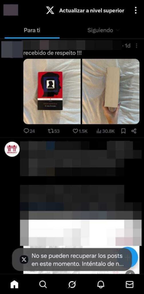 Sin embargo, el problema no fue exclusivo de la versión web de X, pues el mismo reportero ingresó a la aplicación, y aunque pudo ver las publicaciones compartidas previamente, no logró que se cargaran los nuevos posts.