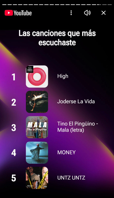 El video de pestañas en YouTube se reproducirá automáticamente y ahí se puede ver la cantidad de canales vistos durante el año, las grabaciones que registraron más reproducciones, la personalidad asignada explicada en tres facetas, la evolución de los hábitos de consumo, así como las canciones y artistas más escuchados.