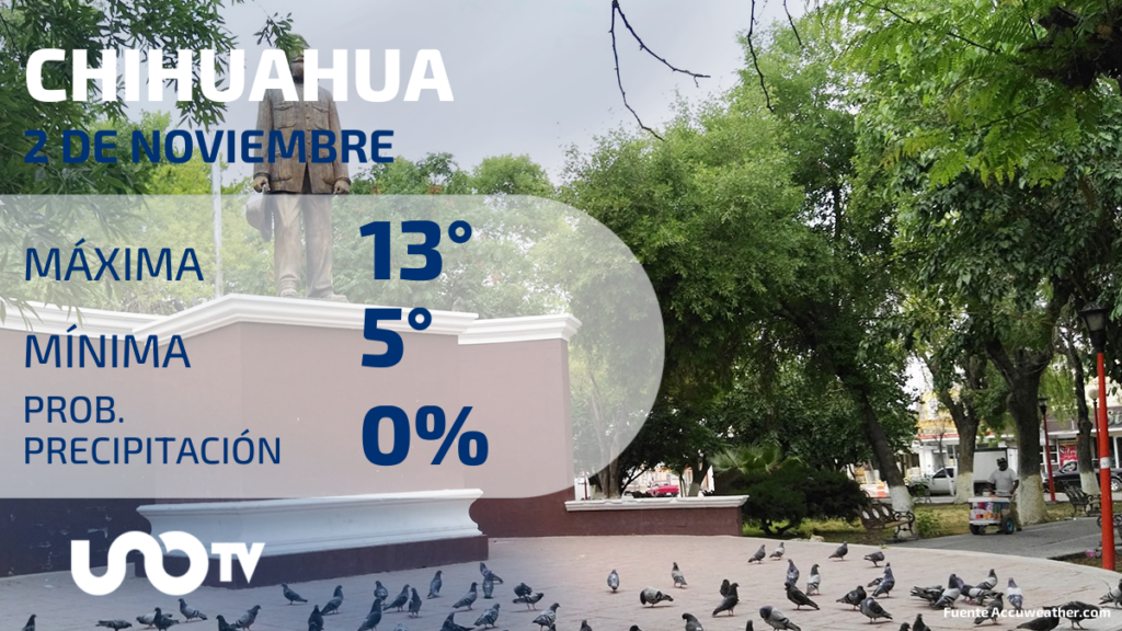 En el municipio de Ciudad Juárez, considerada la urbe más habitada de Chihuahua y a la vez un importante punto fronterizo con EU, las previsiones del clima indican que durante el día del 2 de noviembre se presentará una temperatura máxima de 15 grados Celsius, mientras que la mínima pronosticada será de 7 grados Celsius durante la noche. La probabilidad de lluvia indica un 0% de que se produzcan lluvias en este municipio de Chihuahua.