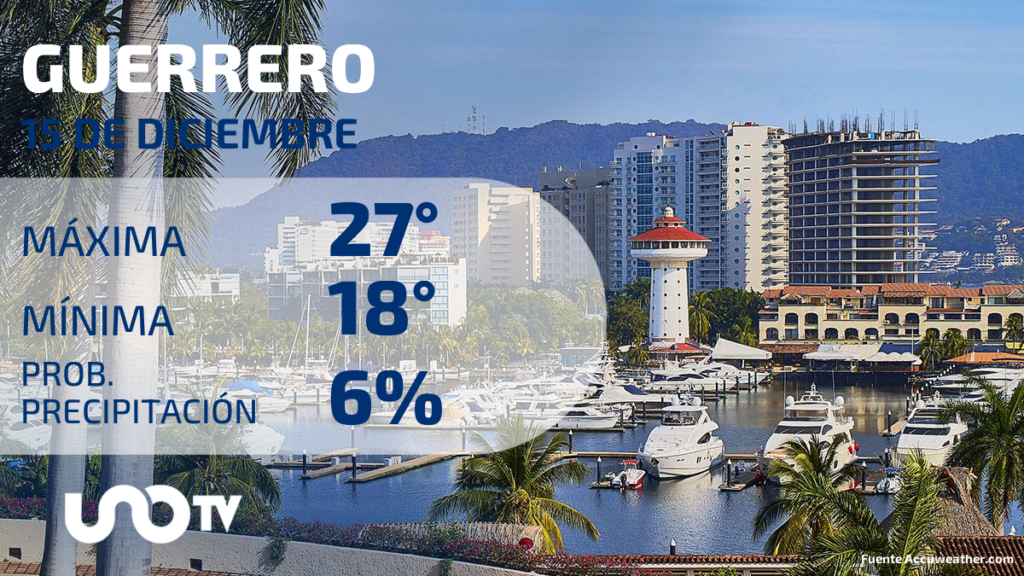 Clima en Guerrero para el 15 de diciembre de 2023