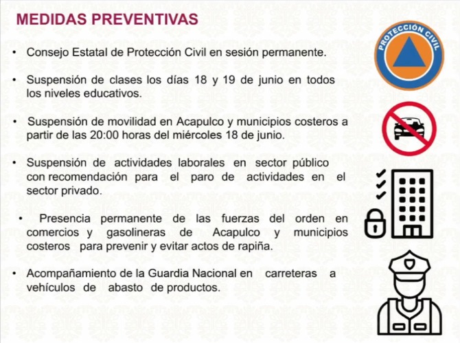 Velázquez Alzúa también reiteró el llamado a la población en zonas vulnerables para resguardarse en sitios seguros y acatar las siguientes recomendaciones de Protección Civil: