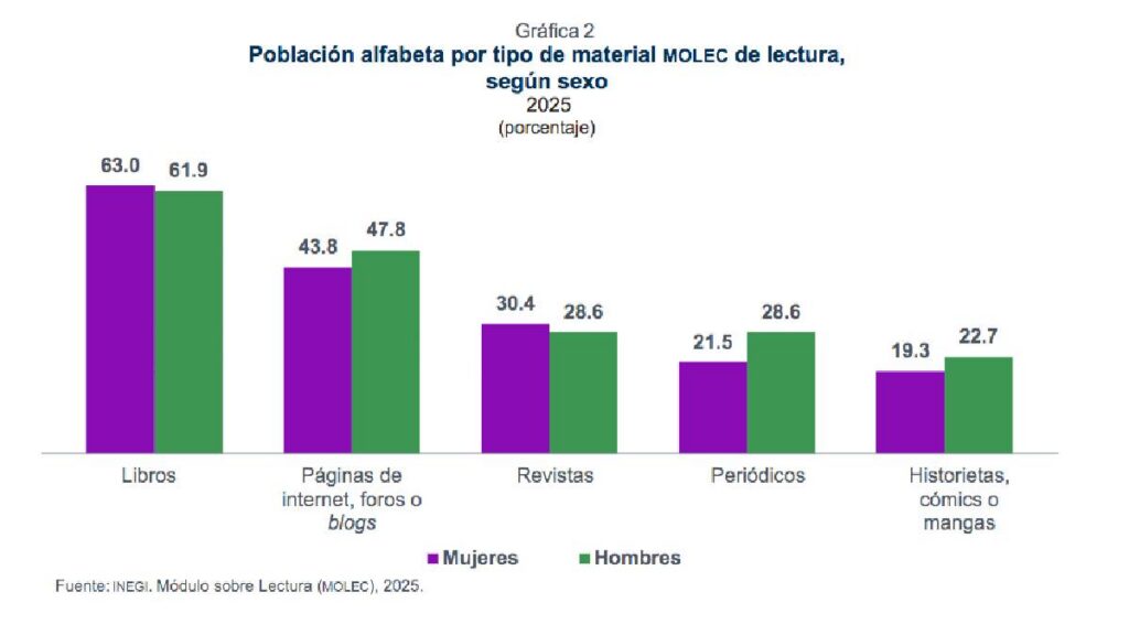 Contrario a lo que la mayoría de las personas piensa de que en México no se lee, existen otros datos, ocho de cada 10 personas alfabetas de 12 años y más leen algún material, como libros, revistas, periódicos, historietas, páginas de internet, foros o blogs, de acuerdo con el Módulo sobre Lectura (MOLEC) 2025 del Inegi. Cuando se piensa en lectura, hasta hace algunos años, sólo se tomaba en cuenta a los libros o revistas, pero en esta medición de Inegi se amplía el abanico y el comportamiento lector en el país.