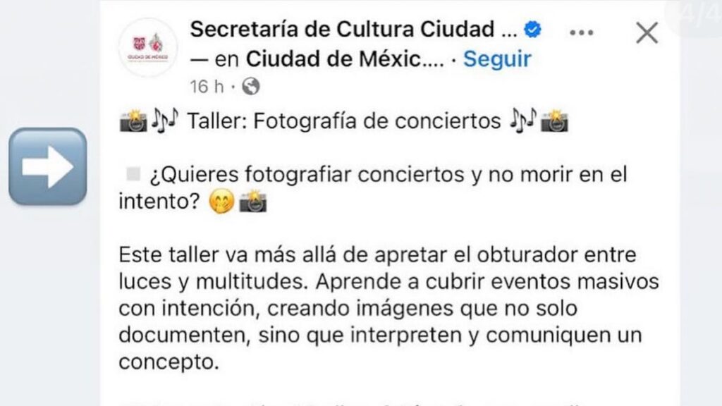La Secretaría de Cultura de la Ciudad de México ofreció una disculpa pública por una publicación en redes sociales realizada el miércoles 14 de enero de 2026, en la que se invitaba a un taller de fotografía de concierto en el Museo Archivo de la Fotografía. El mensaje fue eliminado de todas las cuentas oficiales del museo y de la propia dependencia.