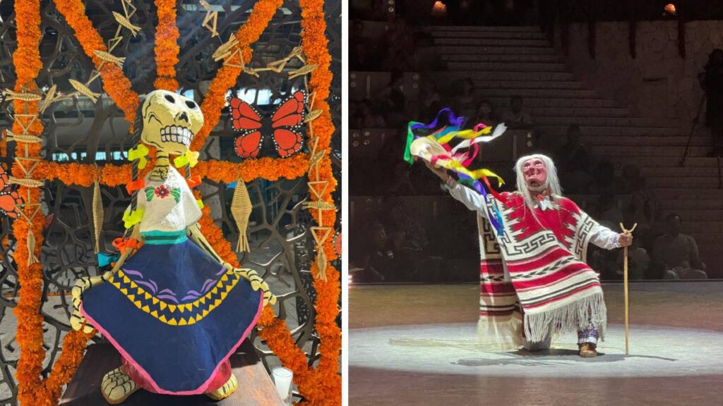 La unión entre Michoacán y la Riviera Maya ofrece a los visitantes una experiencia inmersiva que conecta la cosmovisión del Día de Muertos del occidente con la del sureste, en un ambiente lleno de color, música y tradición.
