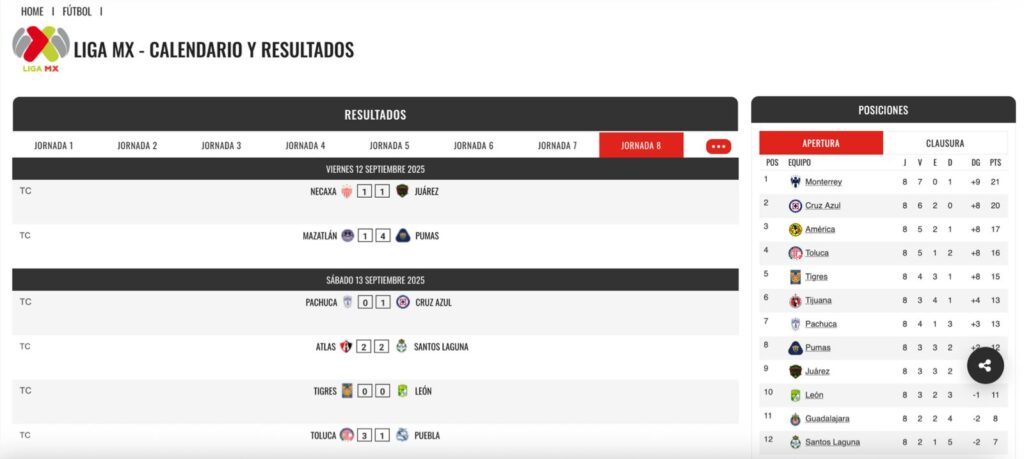 Al dar clic en cualquiera de ellos, se podrá revisar los partidos previstos para cada jornada e, incluso, aparecerá la tabla general del torneo.