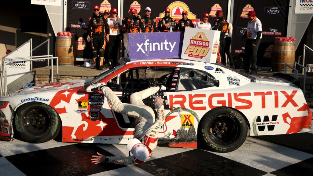 El piloto de Nascar, Connor Zilisch, sufrió una fractura de clavícula el sábado tras caer desde el techo de su automóvil mientras celebraba su victoria en el autódromo Watkins Glen International, en Nueva York.