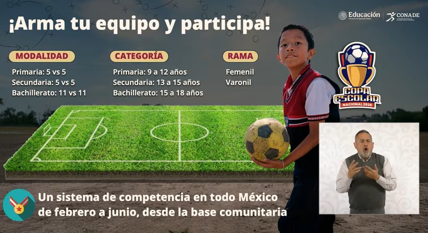 Los interesados en participar en la Copa Escolar Nacional 2026 pueden inscribir a su equipo a través de la página “copaescolar.sep.gob.mx“.