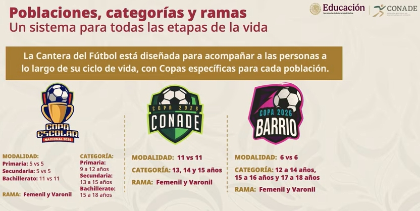 Durante la conferencia matutina de la presidenta Claudia Sheinbaum, las autoridades federales dieron a conocer las bases y fechas para los torneos como la Copa Escolar 2026, cuya final será en el Estadio Olímpico Universitario de la Ciudad de México.