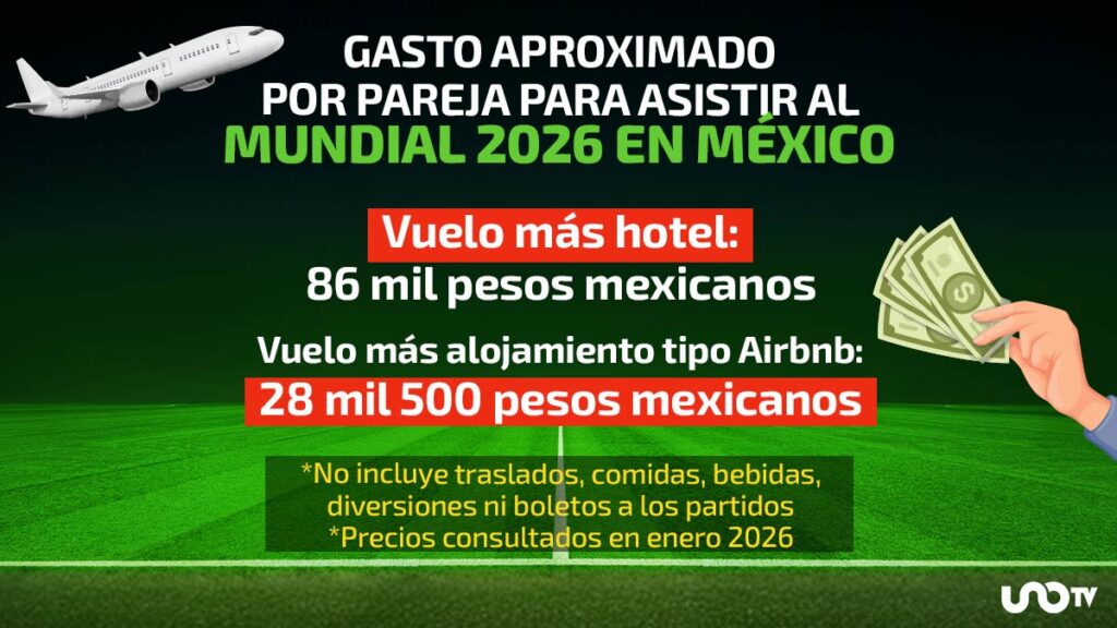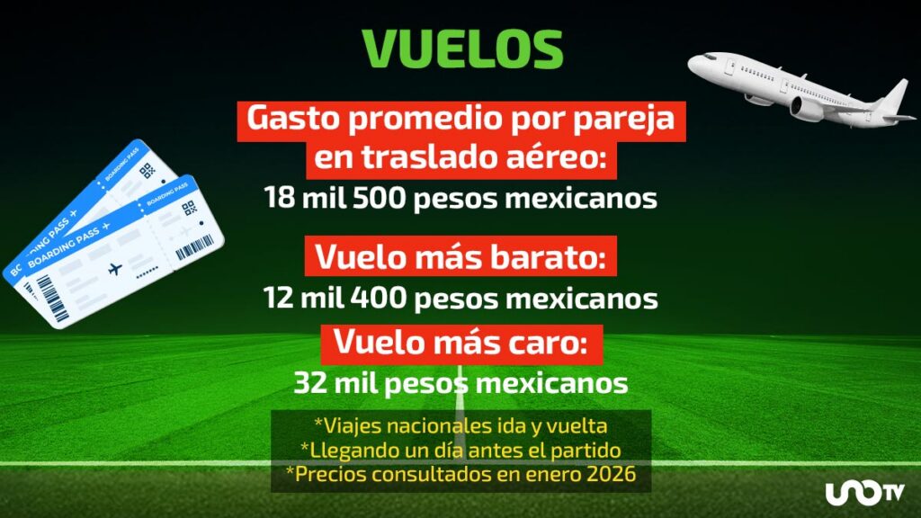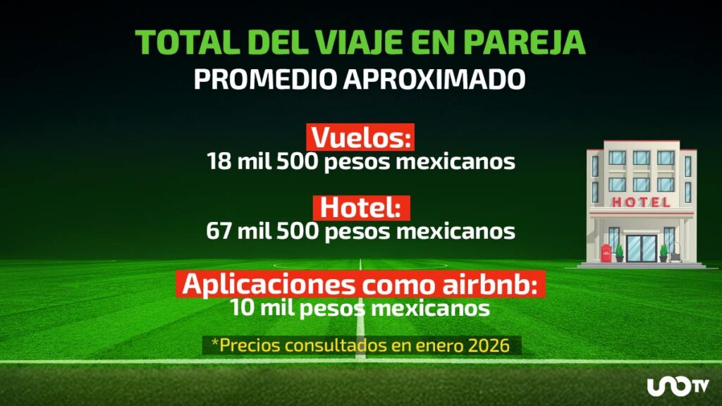 El análisis considera el escenario más común, una pareja que viaja dentro de México, llega un día antes del partido y se queda hasta siete días, dependiendo de la ciudad y el encuentro, como podría ser la inauguración en la Ciudad de México, un partido de la Selección Mexicana en Guadalajara o un juego relevante en Monterrey.