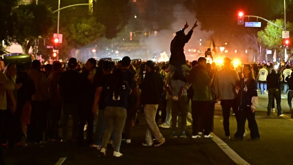 Los Dodgers de Los Ángeles ganaron su segundo título consecutivo de Serie Mundial este sábado ante los Blue Jays de Toronto. Los fans salieron a las calles angelinas para festejar el bicampeonato de las Grandes Ligas, entre banderas, bengalas y gritos eufóricos.