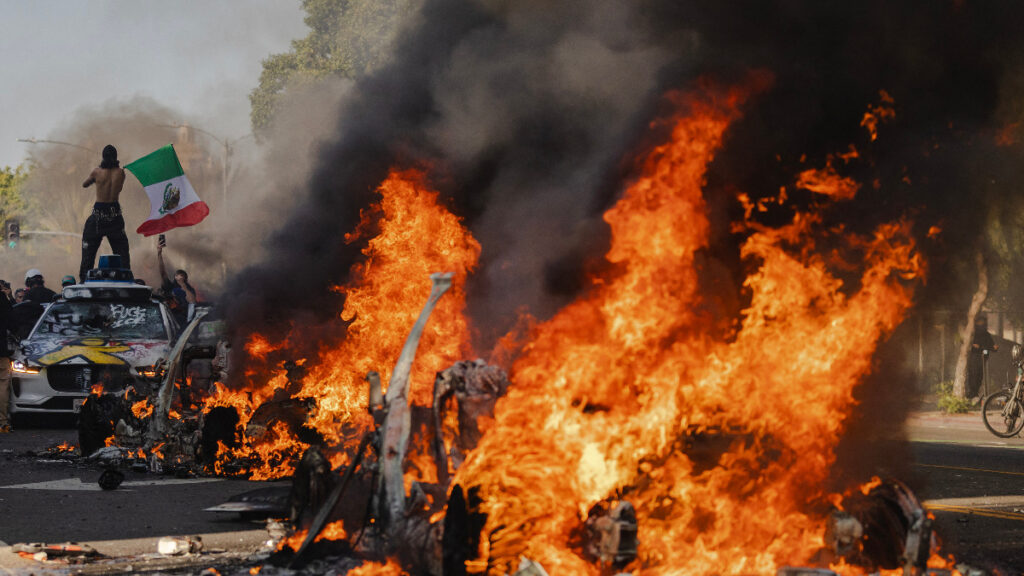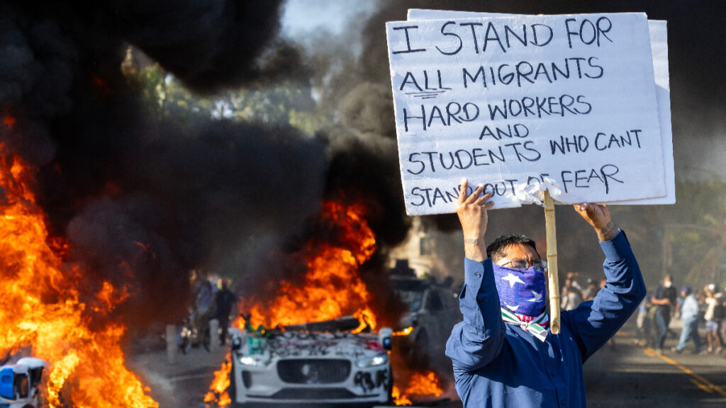 Aunque muchas de las manifestaciones han sido pacíficas, algunas se tornaron violentas al caer la noche. Se han registrado saqueos, actos de vandalismo y enfrentamientos con la policía. El presidente Trump calificó las protestas como una “invasión de un enemigo extranjero”.