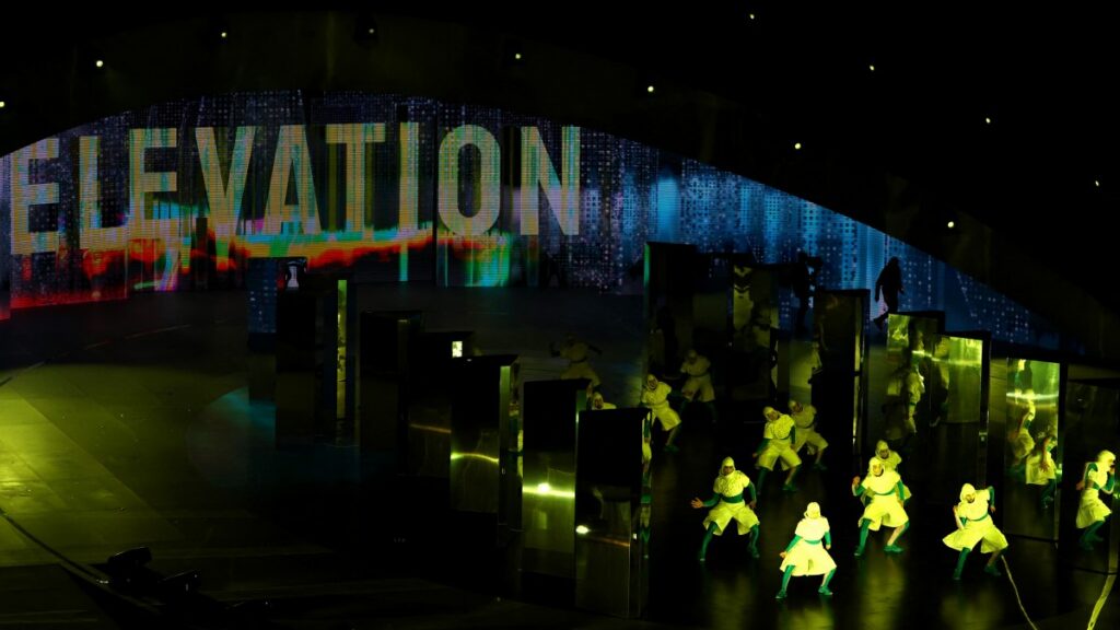 Después de ver desfilar a los atletas que formaron parte de Milano Cortina 2026, una mezcla de música electrónica se hizo presente bajo el lema de “Elevation” (“Elevción”), mientras decenas de bailarines se apoderaron de la pista.