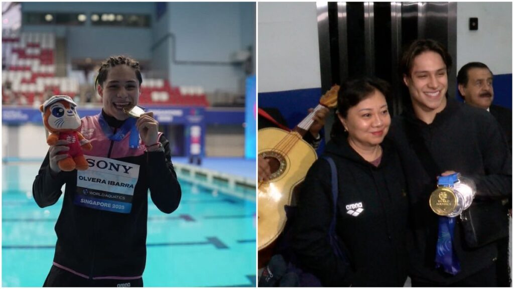 Osmar Olvera fue recibido con mariachis en su regreso a México tras ganar oro en el Mundial de Deportes Acuáticos de Singapur 2025 y ser elegido como el mejor clavadista masculino de la competencia. Además destacó que tiene una petición para la presidenta Claudia Sheinbaum.