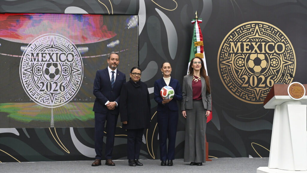 En la presentación estuvo la presidenta de México, Claudia Sheinbaum, la secretaria de Gobernación, Rosa Icela Rodríguez, Gabriela Cuevas Barrón, coordinadora de los trabajos del Gobierno Federal para el Mundial y el director ejecutivo de la FIFA en México, Jurgen Mainka.