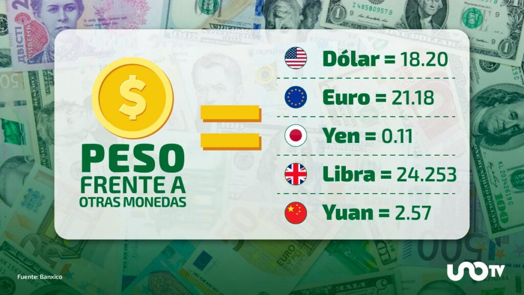 Esta es la cotización de algunas divisas frente al peso mexicano, de acuerdo con el Banco de México.