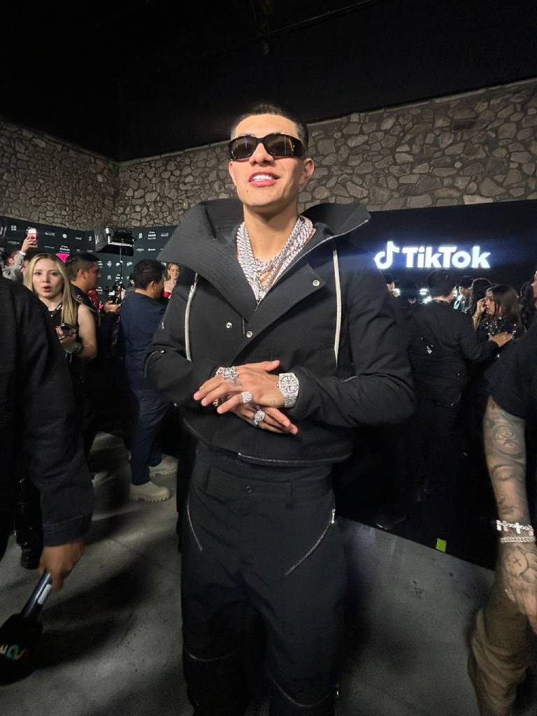 Armando Toledo Rosas, conocido artísticamente como “El Bogueto”, será uno de los encargados de amenizar el evento con su música en el escenario. Pudo ser visto en la alfombra roja con una chamarra negra de cuello abierto, un pantalón oscuro y varias joyas brillantes.