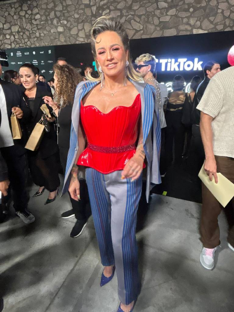 María José, cantante y actriz mexicana, se presentó con un look que destacó en la alfombra roja de los TikTok Awards México 2026. Acudió vestida con un corsé rojo, un traje a rayas a juego con unas zapatillas azules, unos pendientes largos y un peinado alto que no podía pasar por desapercibido.