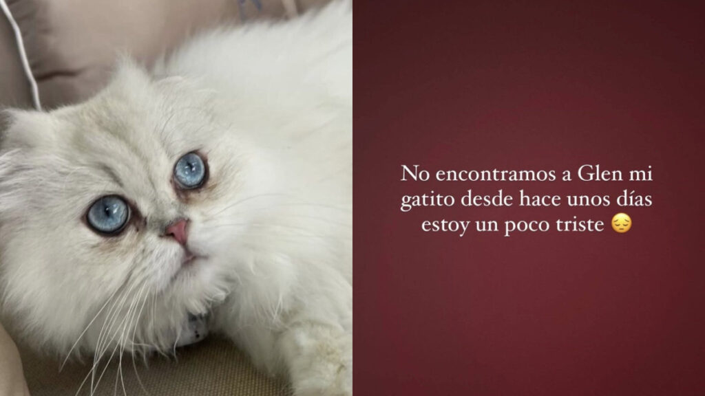 “No encontramos a Glen, mi gatito, desde hace unos días. Cualquier información, mandar mensaje, por favor (…) ayúdenme a encontrarlo”, escribió la artista en sus historias de Instagram.