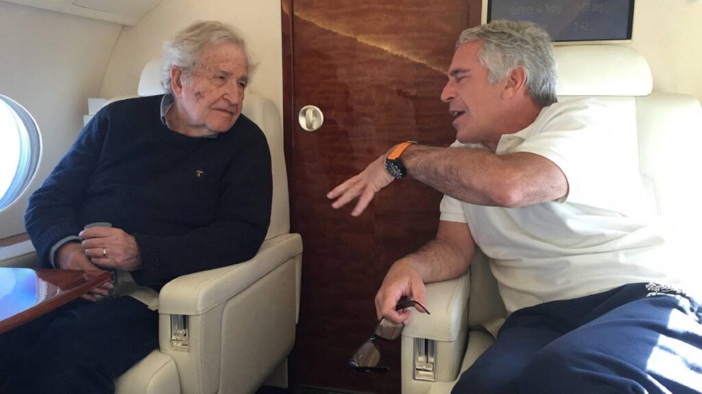 En una segunda tanda de material gráfico difundida el jueves, se dio a conocer una fotografía en la que se observa al intelectual Noam Chomsky conversando con Epstein, presuntamente a bordo de su avión privado.