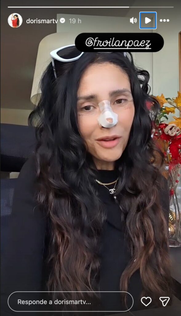 A través de su cuenta de Instagram, Dorismar compartió un video desde lo que parece ser la sala de su casa, en donde lució las cicatrices a nueve días de someterse a una operación reconstructiva de nariz.