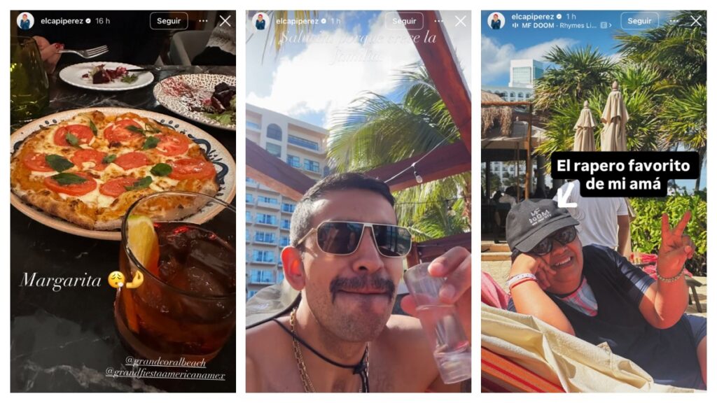 Más adelante, el conductor publicó tres historias referentes a las vacaciones que se encuentra disfrutando con su esposa Itzel Barro en Cancún. De acuerdo con lo mostrado en redes, la pareja se encontraría fuera de la Ciudad de México desde hace algunos días, debido a asuntos familiares.