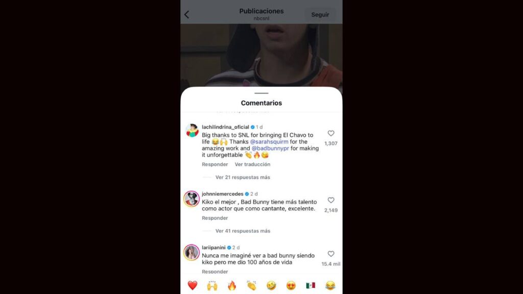 Finalmente, se especula en algunos medios de comunicación que Carlos Villagrán, recordado por su personaje de Quico, habría publicado “@badbunnypr me tocará cantar el sapito a tu estilo”. Sin embargo, no hay certeza de que el célebre actor escribiera eso.