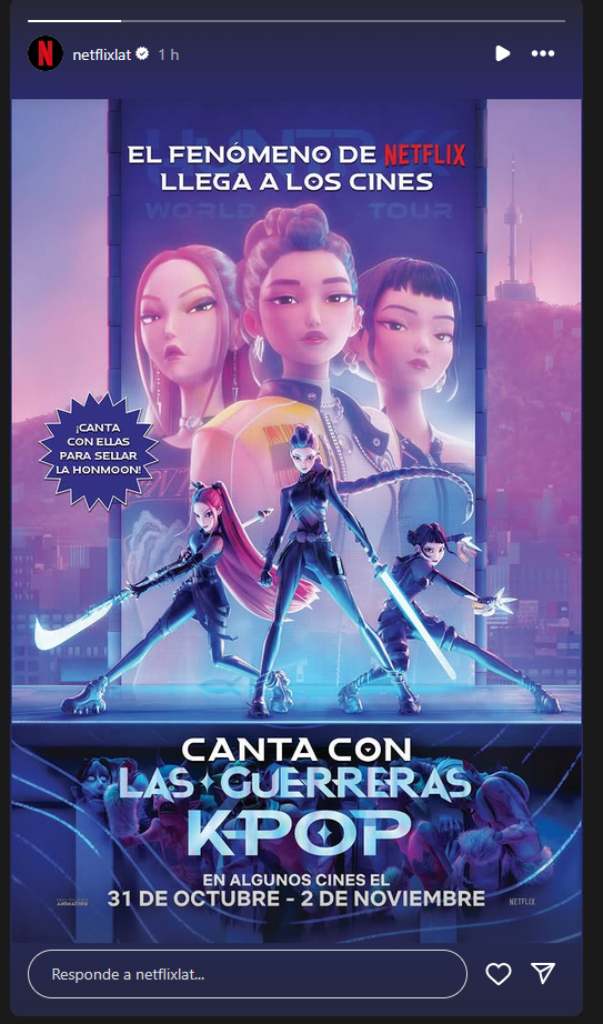 Netflix informó en su historias de Instagram que la cinta, que se ha convertido en todo un fenómeno cultural y musical, comparada con “Frozen”, llegará a los cines del 31 de octubre al 2 de noviembre, pero solo en algunas salas.