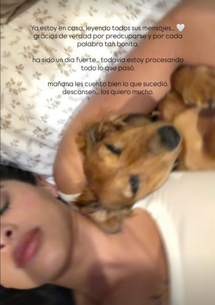 “Ya estoy en casa, leyendo todos sus mensajes… gracias de verdad por preocuparse y por cada palabra tan bonita”.