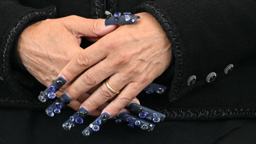 Pero las uñas tipo “burbuja”, una tendencia que crea textura en 3D con acabados gelatinosos o tipo gota de agua, en un tono azul cobalto vibrante, fueron las protagonistas.