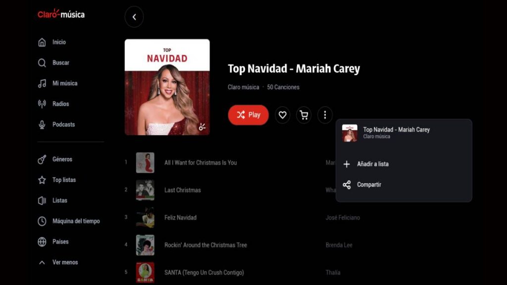 El usuario puede crear así su propia lista de canciones navideñas en Claro Música y escucharla las veces que quiera, incluyendo únicamente a los grupos o cantantes que le gusten.