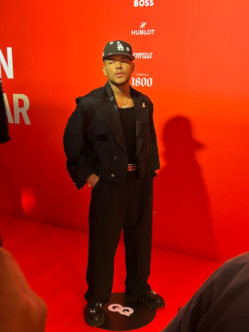 El venezolano Maisak, uno de los grandes artistas emergentes del momento, llegó con un look oscuro, destacando una gorra de Los Ángeles: