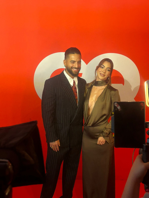Sin duda, uno de los mejores looks de los premios Men Of The Year 2025 corrió a cargo de Maluma, y su esposa. El cantante llegó con un traje oscuro y con líneas blancas, combinando con su camisa y corbata roja. Mientras su esposa usó un vestido con el pecho en “V” y en tono verde: