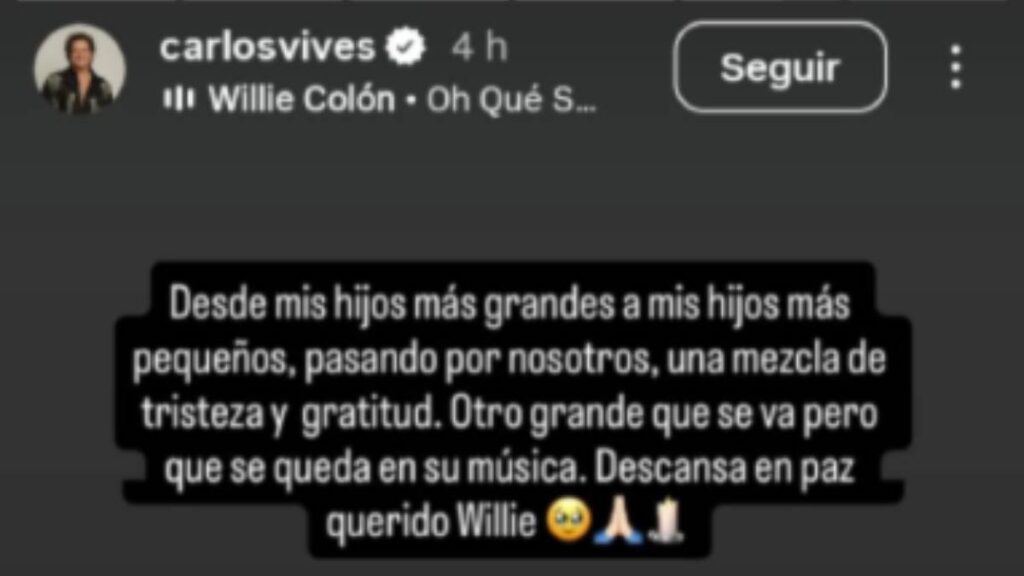 Por su parte, Carlos Vives también dedicó un sentido mensaje al trombonista, señalando que su música perdurará para siempre, a pesar de su partida.