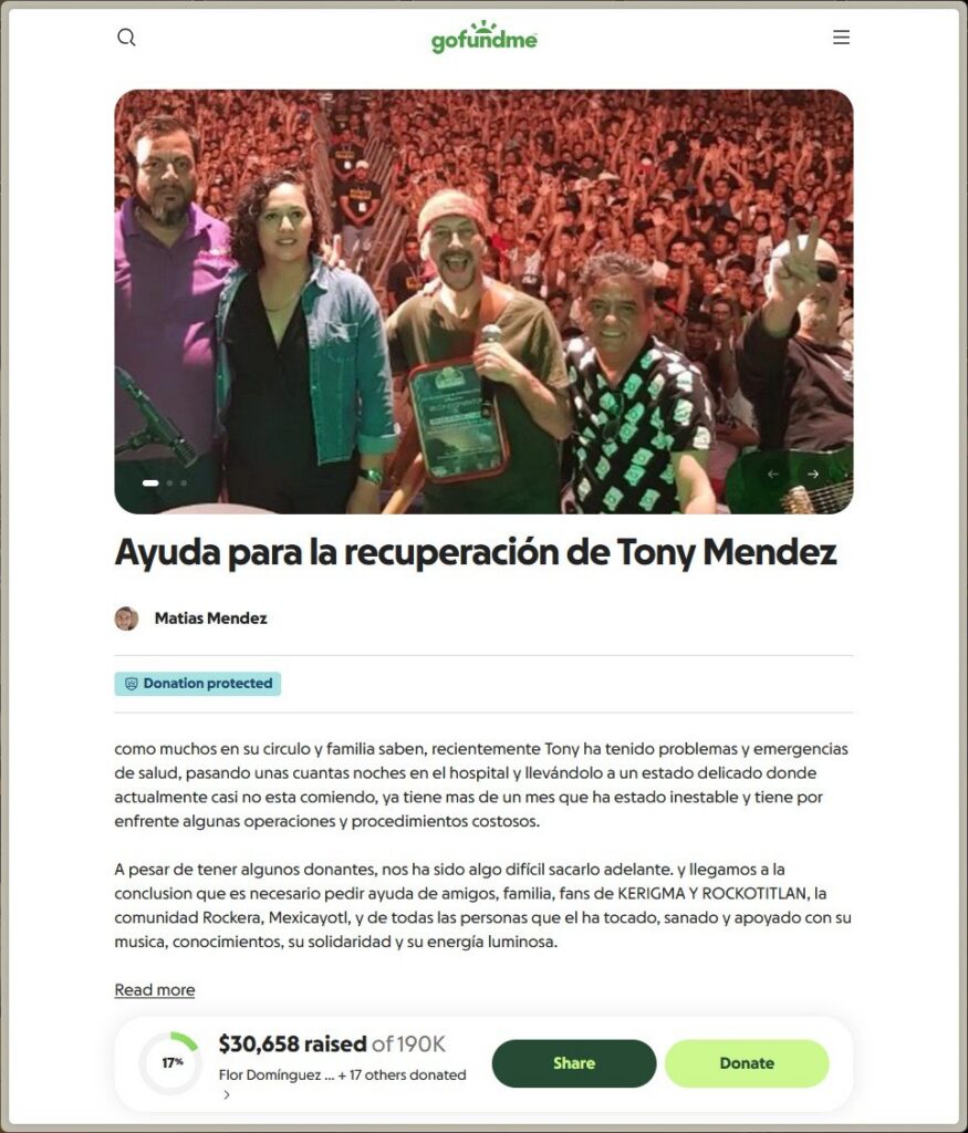 Tony Méndez, guitarrista, vocalista de Kerigma y creador de Rockotitlán, falleció ayer 7 de diciembre, luego de enfrentar complicaciones graves de salud. Su deceso provocó una ola de reacciones en redes sociales, donde fans y colegas lamentaron la partida.