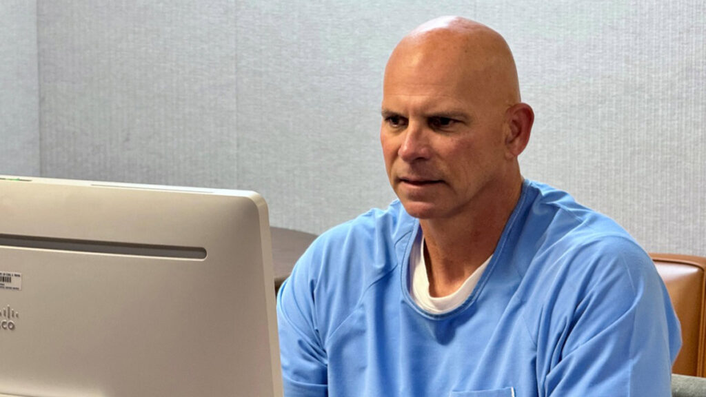 Lyle Menéndez, condenado junto a su hermano Erik por el asesinato de sus padres en 1989 en Beverly Hills, participó en la sesión de manera virtual desde una prisión en San Diego, vestido con el uniforme azul de interno.