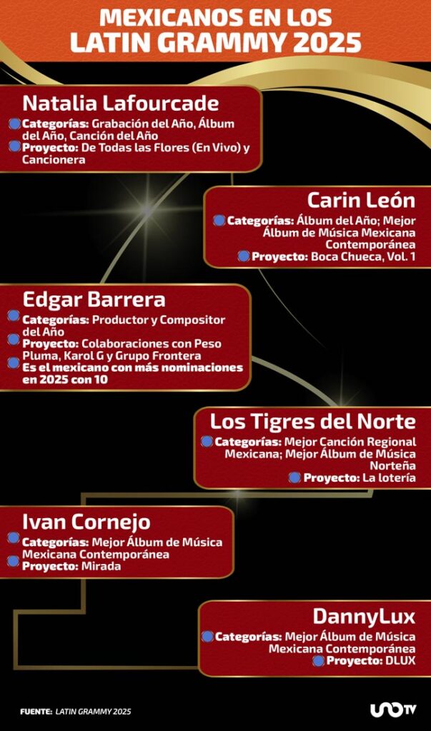 La ronda final de votaciones que determinará a los ganadores del Latin Grammy iniciará el 1 de octubre de 2025. El evento de premiación se llevará a cabo el jueves 13 de noviembre de 2025, en el MGM Grand Garden Arena en Las Vegas y tendrá una transmisión de tres horas producida por Televisa Univision.