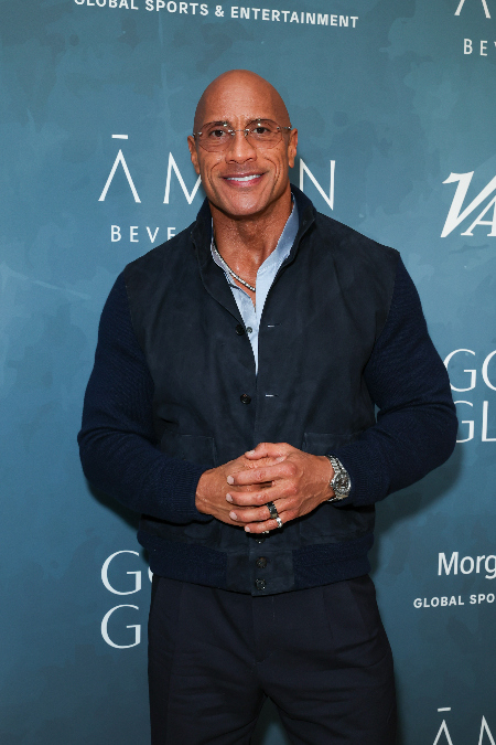 Dwayne Johnson “La roca”, actor estadounidense de 53 años, lució un atuendo más sobrio, con una chaqueta y pantalón en color negro y una camisa celeste para contrastar.