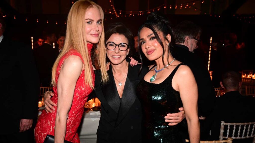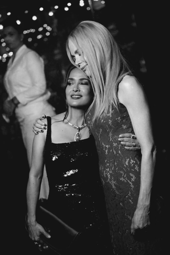 Pero no sólo el look de Hayek generó conversación: Hayek posó sonriente junto a Nicole Kidman, con quien compartió protagonismo en la velada, acallando los rumores tras la polémica que se suscitó en la Semana de la Moda de París en el desfile de Balenciaga.