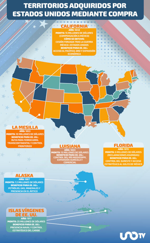 De Luisiana a Alaska, estas adquisiciones contribuyeron a que Estados Unidos se convirtiera en uno de los países con mayor extensión territorial del mundo y reforzaron su peso político, económico y estratégico.