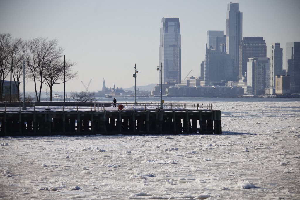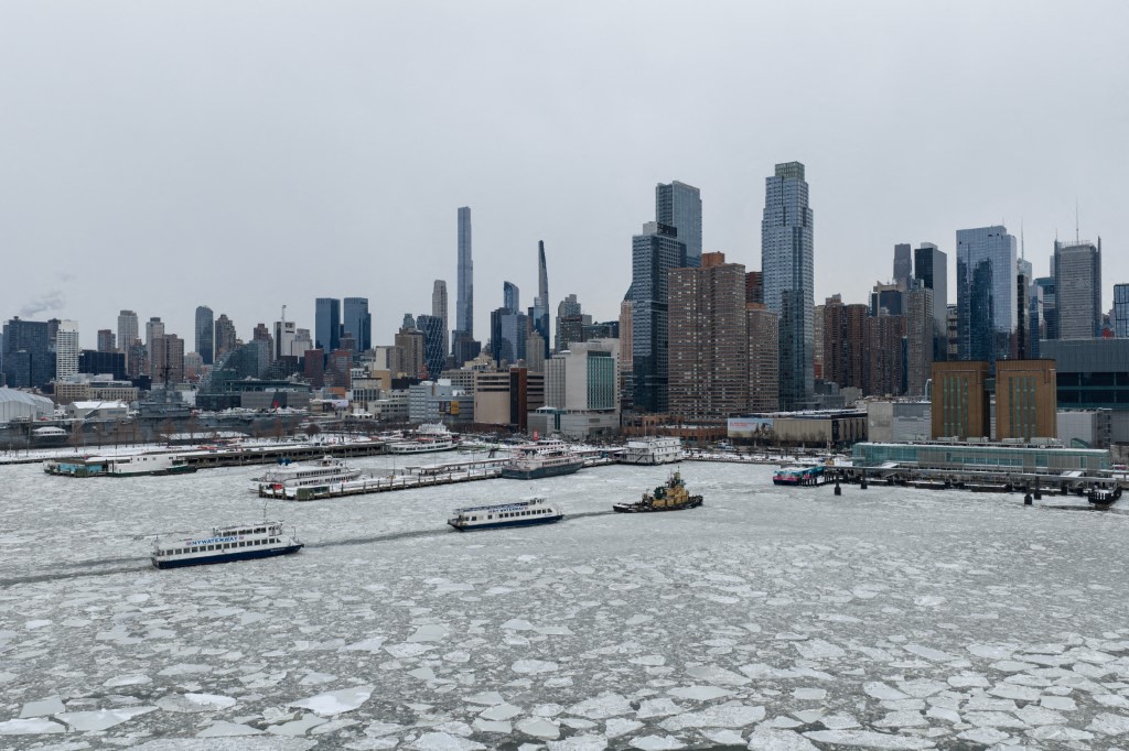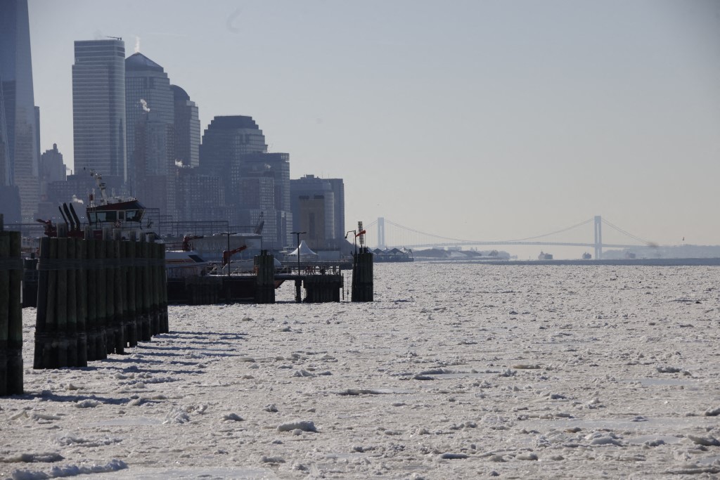 Fotografías tomadas desde zonas como Hudson Yards, el ferry de Staten Island y áreas del condado de Rockland muestran un Río Hudson cubierto de placas de hielo, una imagen que no se presenta con frecuencia en décadas recientes dentro del entorno urbano de Nueva York.