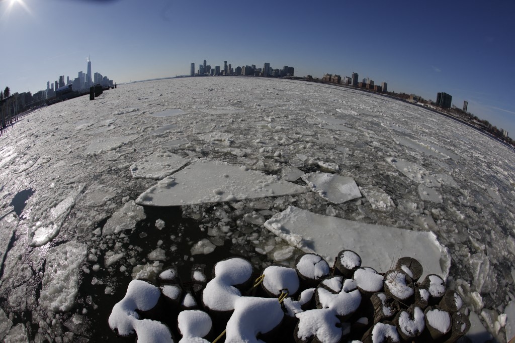 Videos virales muestran el Río Hudson congelado