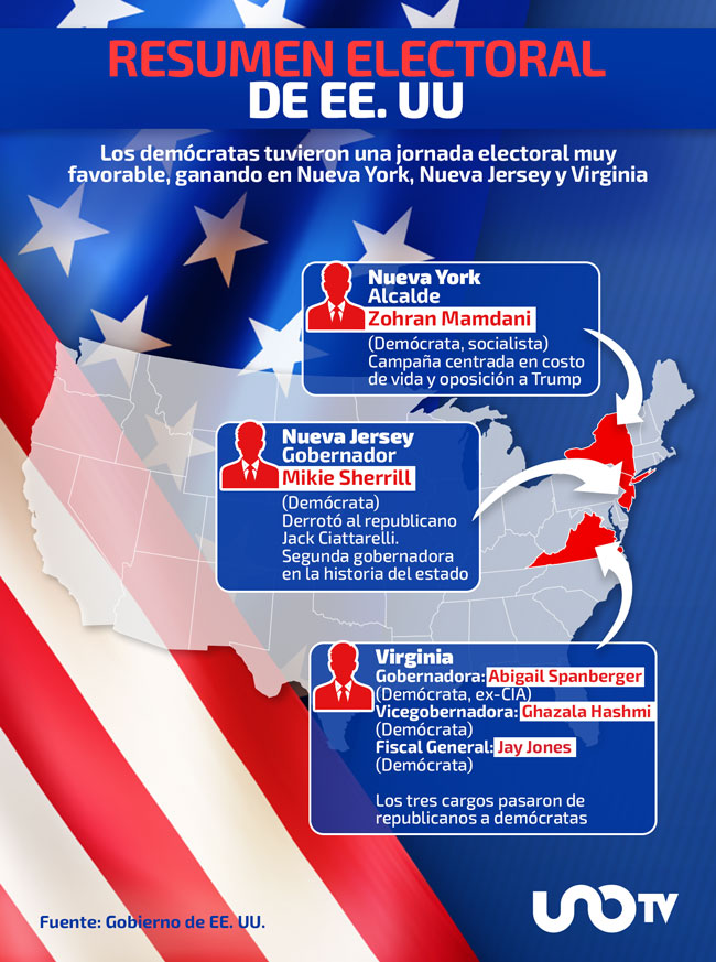 El presidente de Estados Unidos, Donald Trump, enfrenta una derrota política significativa tras los resultados de las elecciones estatales celebradas el martes en Virginia, Nueva Jersey y Nueva York, donde los candidatos republicanos que contaban con su respaldo perdieron frente a aspirantes demócratas y progresistas.